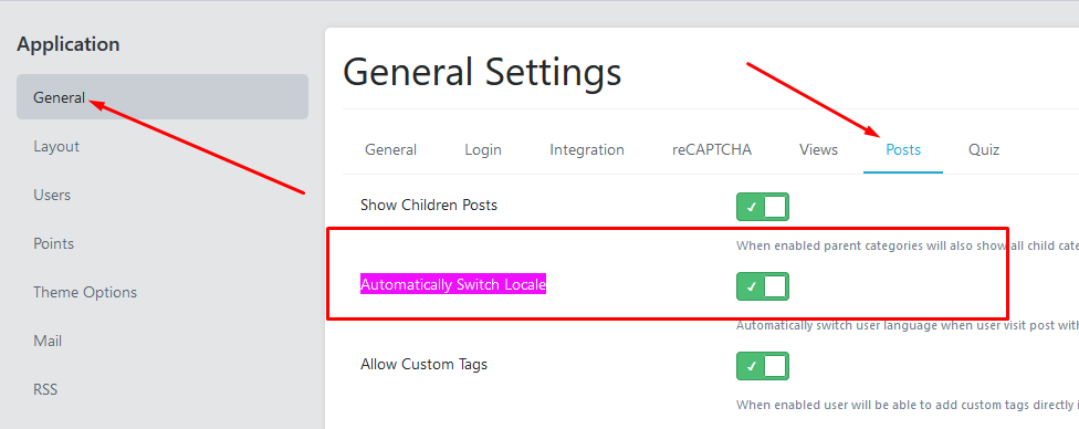 To enable automatic locale switching login as administrator and go to Settings > General > Posts and toggle Automatically Switch Locale after enabling when your user visit URL with translated slug in URL Quizier will automatically change website Language in Post Language.